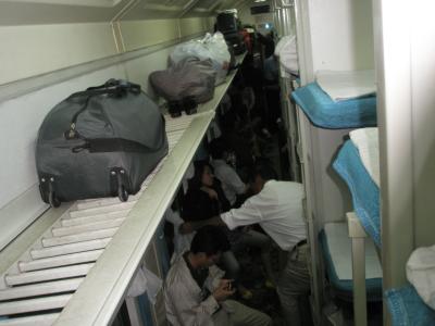 Wie groß meine Freude doch war, als wir endlich aufs Gleis gelassen wurden. Soweit war ich letztes Mal ja nicht gekommen. Die Enttäuschung folgte dann sofort, als ich die Waggons von innen sah. Bisher waren die Schlafzüge mit denen ich gefahren bin, immer in Abteile unterteilt, die durch einen Vorhang vom Rest des Waggons getrennt waren. Diesmal hatte man nur Nischen, in denen jeweils 6 Betten waren (immer drei übereinander) und die waren zum Gang hin offen.