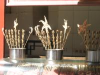 Was macht man mit so einem schönen Tag in Beijing? Richtig, man geht Shoppen. Corrina wollte unbedingt auf einen Kleidermarkt in Xidan 西单 und ich in den Foreign Language Bookstore am Wangfujing 王府井 (die größte Touri-Einkaufsstraße in Beijing). Der Buchladen hat für chinesische Verhältnisse ein Riesenangebot, vor allem was englischsprachige Literatur betrifft. Habe mir aber erst mal nur 2 Bücher mitgenommen, weil die Preise genauso riesig sind. Danach haben wir Halt gemacht an der Fressmeile am Wangfujing. Für alle, die sich auf komisches chinesisches Essen freuen. Von Vögeln und Skorpionen am Spieß bis Würmern gibt es hier alles, was das Herz begehrt.