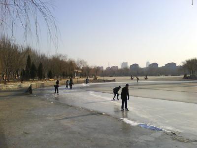 Schlittschuhläufer im Park (der See scheint komplett durchgefroren):