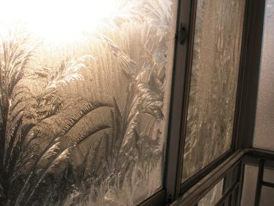 Eisblumen am Balkonfenster:
