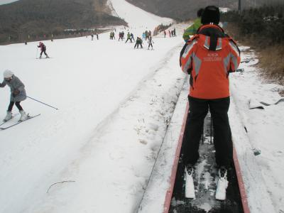 Wir waren zu 6., Qiwei, Meiling und ich (alle 3 nicht wirklich Ahnung vom Ski fahren), dann Meilings Schwester mit ihrem Freund und ein Freund der beiden. Die waren alle drei mit Snowboards unterwegs und jeder hat sich dann einen von uns Nichtskönnern geschnappt und ein paar Grundbewegungen und so gezeigt. Konnte ich aber wider Erwarten doch alles noch. Ich bin dann mit dem Freund von Meilings Schwester auf die Piste hochgefahren (mit einem lustigen Förderband, weiß gar nicht, ob es das bei uns auch gibt) und bin einfach mal langsam runtergefahren.
