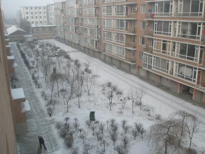 Als wir nachmittags heimgefahren sind, hatte es bereits angefangen zu schneien, wie passend... In Yingkou angekommen war bereits alles weiß und glatt. Heute liegt immer noch Schnee. Bei diesen Temperaturen bin ich auch sehr zuversichtlich, dass der Schnee noch eine Weile liegen bleibt. Im Moment hat es z. B. -13°C. Ich hätte doch in Deutschland bleiben sollen. Schnee hin oder her, die Temperaturen sind daheim doch um einiges erträglicher und angenehmer!!!