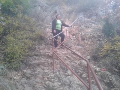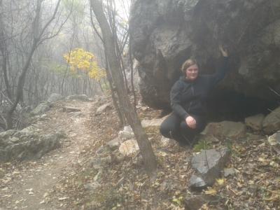 Dort wurden die Autos abgestellt und alle machten sich auf den Weg, bis auf unseren Co-Organisator, der am Abend vorher zuviel getrunken und nur 2 Stunden geschlafen hatte, der blieb in seinem Auto und schlief. Sehr schnell verloren wir den Grossteil der Gruppe, weil sie mit einem unglaublichen Tempo unterwegs waren. Qiwei und ich waren anfangs dann nur noch mit 3 anderen Leuten unterwegs. Zuerst ging es einen Waldweg nach oben, doch der endete sehr schnell und es gab dann nur noch einen Weg, der ein wenig steil ueber Felsen nach oben fuehrte. Anfangs gab es noch ein Gelaender, spaeter dann nicht mehr. Da musste man dann hochkriechen.