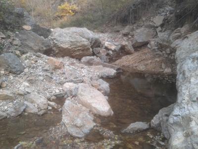 Da Qiwei der Weg zu steil wurde, sind wir zu zweit dann ungefähr auf halber Höhe des Berges geblieben und irgendwann wieder zurück geklettert. Unten haben wir dann noch eine aus unserer Gruppe getroffen, die auch den Rest der Gruppe verloren hatte. Nach etwa einer Stunde sind dann die anderen auch wieder zu uns gestoßen. Wir haben in der Zeit im Auto gewartet und uns noch ein bisschen unten umgesehen. Ich war vor allem ganz fasziniert von dem kleinen Bergbach, der da vor sich hinfloß. Habe in China noch nie so sauberes Wasser gesehen. Irgendwelche anderen Chinesen haben das sogar getrunken, aber das hab ich mich dann doch nicht getraut nach meinen vielen Vorlesungen und Seminaren über chinesische Umwelt.